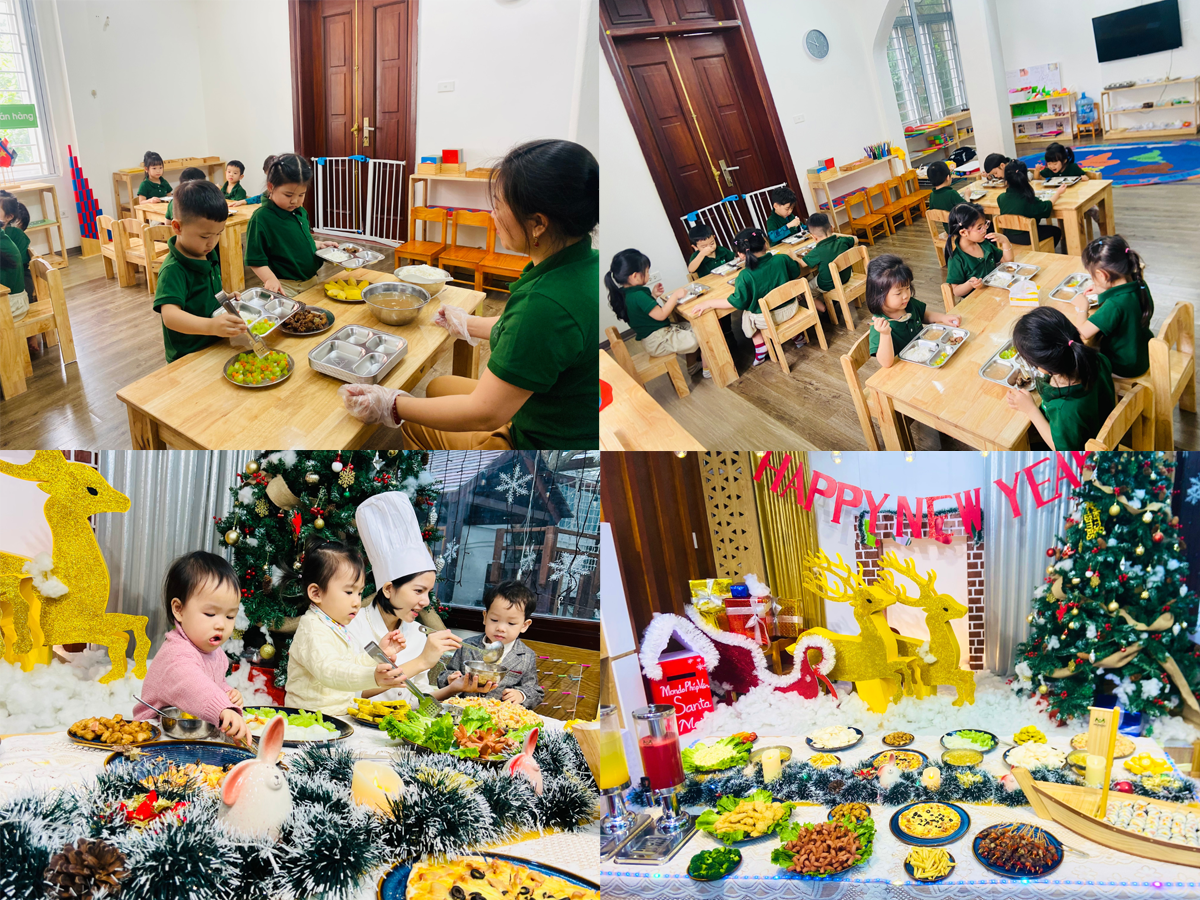 Chế độ dinh dưỡng được trường đặc biệt quan tâm, bữa ăn chia nhỏ trong ngày để đảm bảo các con luôn tràn đầy năng lượng. Thực đơn của trẻ được nghiên cứu kỹ lưỡng và thay đổi theo mùa; món ăn chế biến ngon miệng, bắt mắt nhằm kích thích vị giác của trẻ, khiến các con luôn cảm thấy thích thú mỗi bữa ăn.